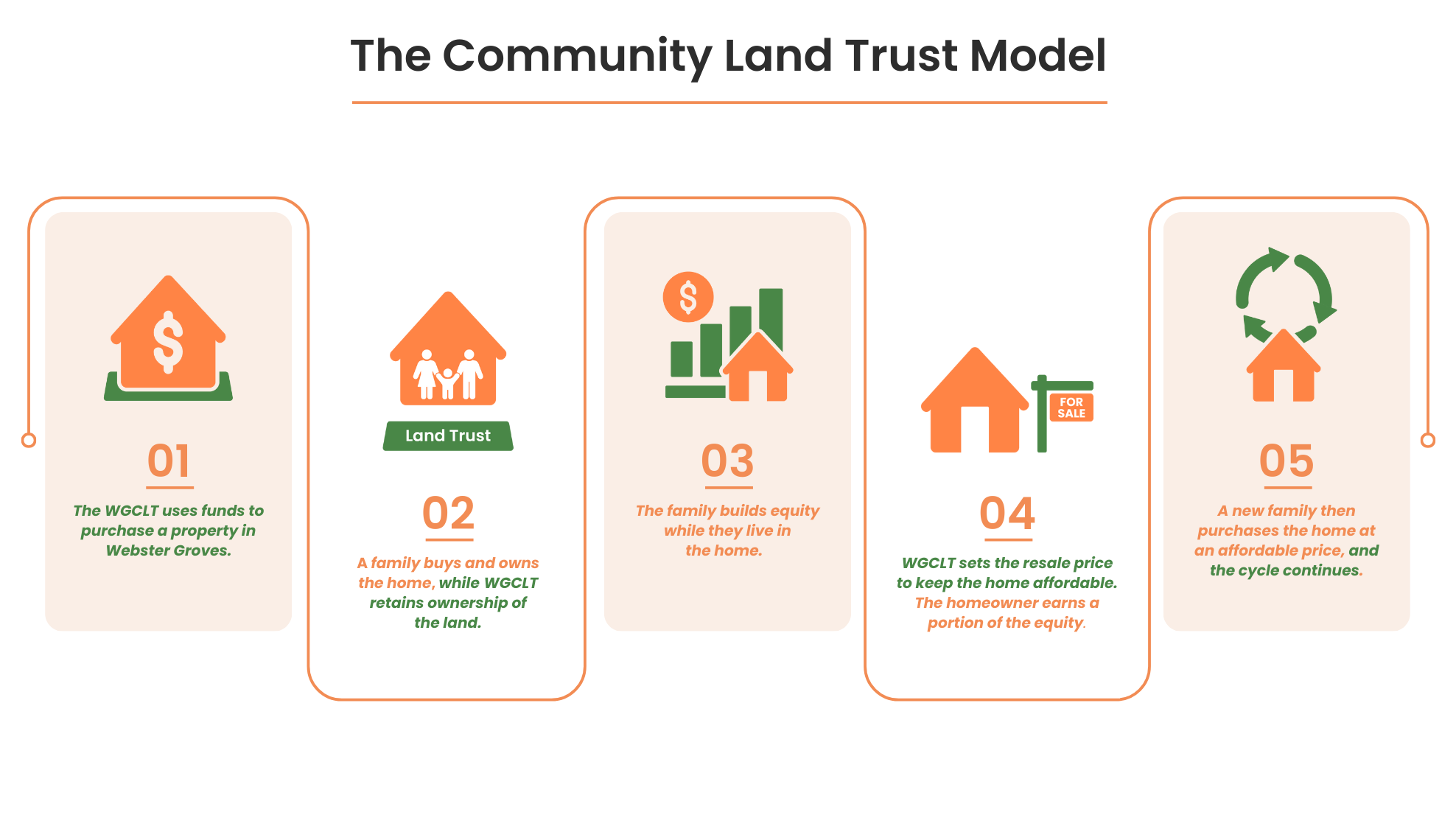 The Webster Groves Community Land Trust is a nonprofit, democratically governed organization created to preserve and expand access to affordable local home ownership.